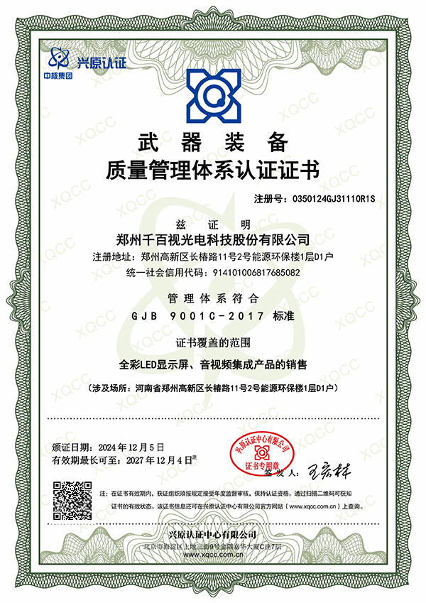 武器装备质量管理体系认证证书