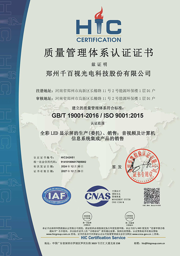 质量管理体系认证证书