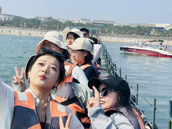 踏浪寻奇,共谱活力序曲。 小石岛滩涂之上,俯拾皆是赶海之趣;金色沙滩间,海上嘉年华项目掀起欢声笑语,浪花飞溅映照团队默契。幸福门下,威海公园的葱茏与海韵交织,定格携手同行的温馨。